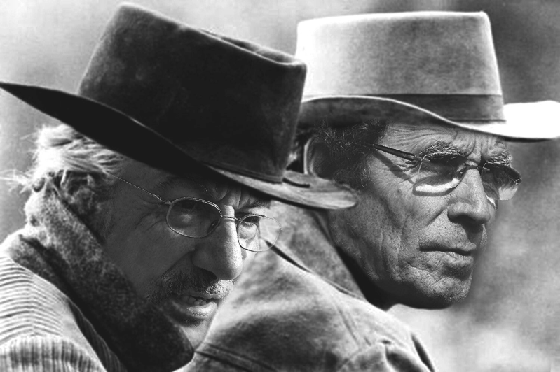 Links das Original zeigt Paul Newman u. Robert Redford in dem Film "Zwei Banditen" - rechts die Fotomontage zeigt die Freunde Michael und Paul Roland